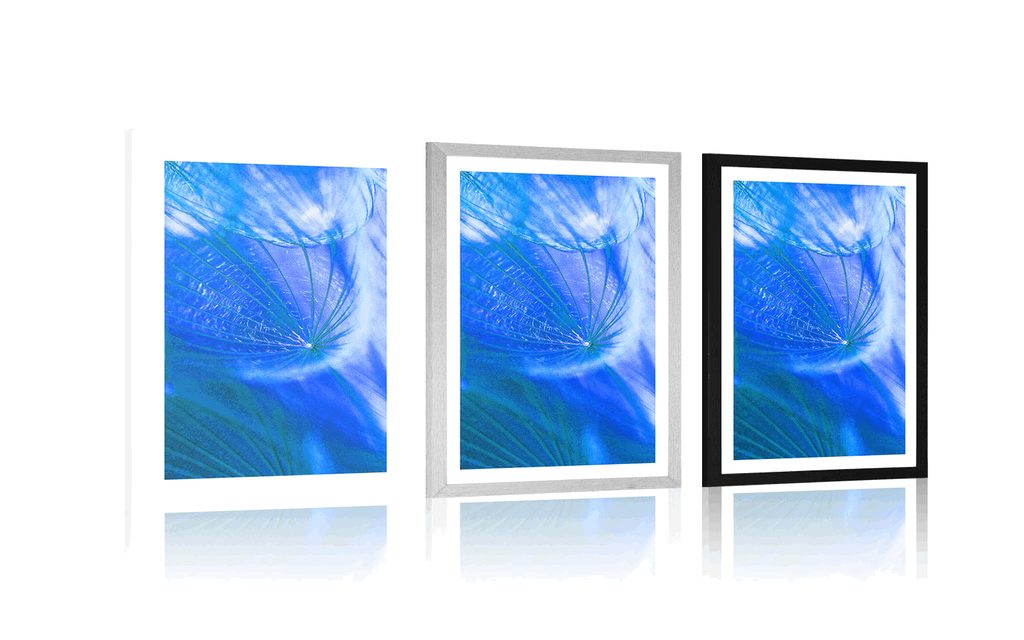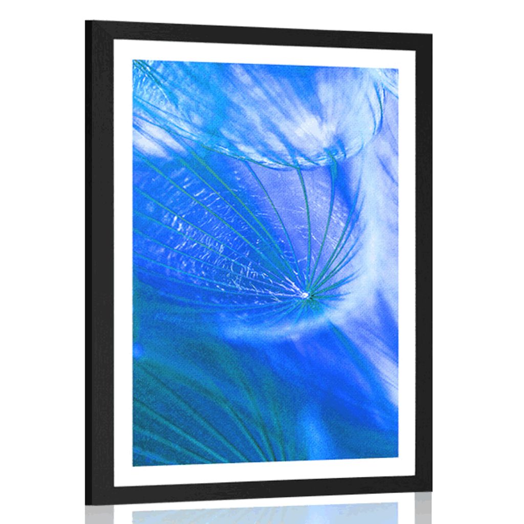 Affiche avec passe-partout – Beau pissenlit en bleu