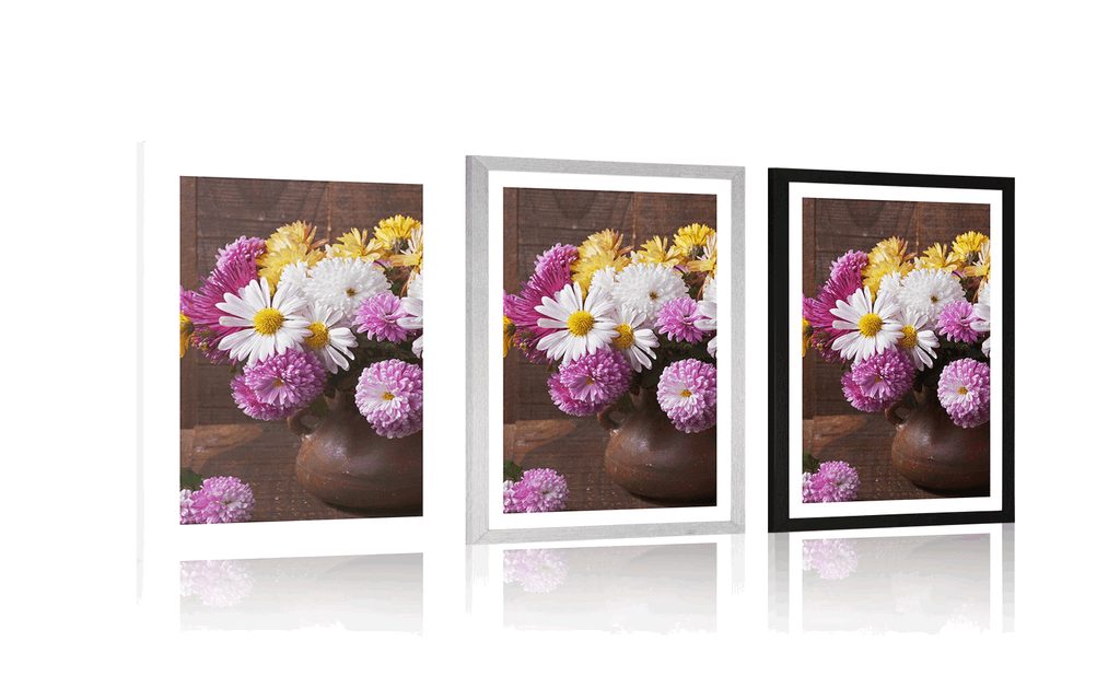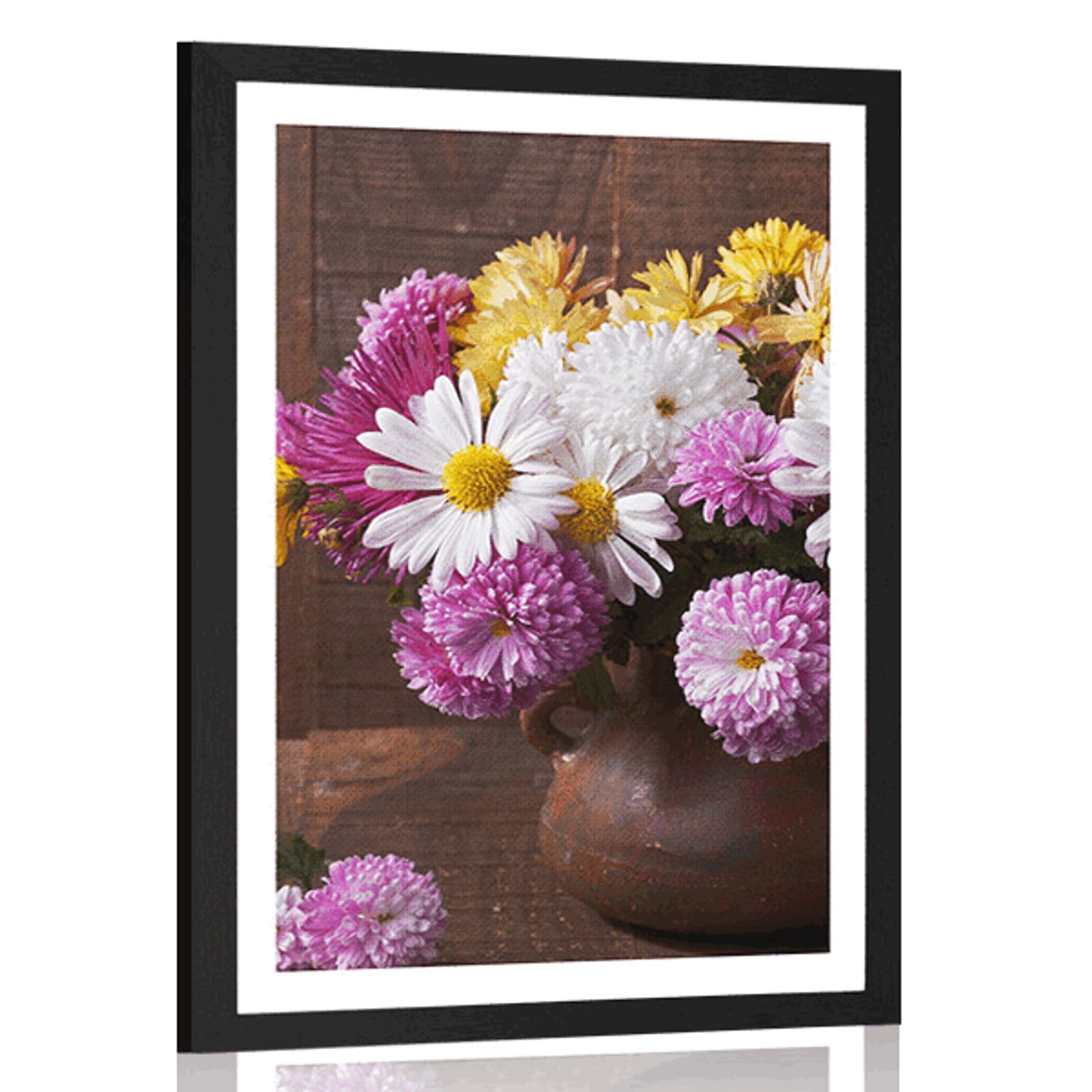 Affiche avec passe-partout – Nature morte avec chrysanthèmes d'automne