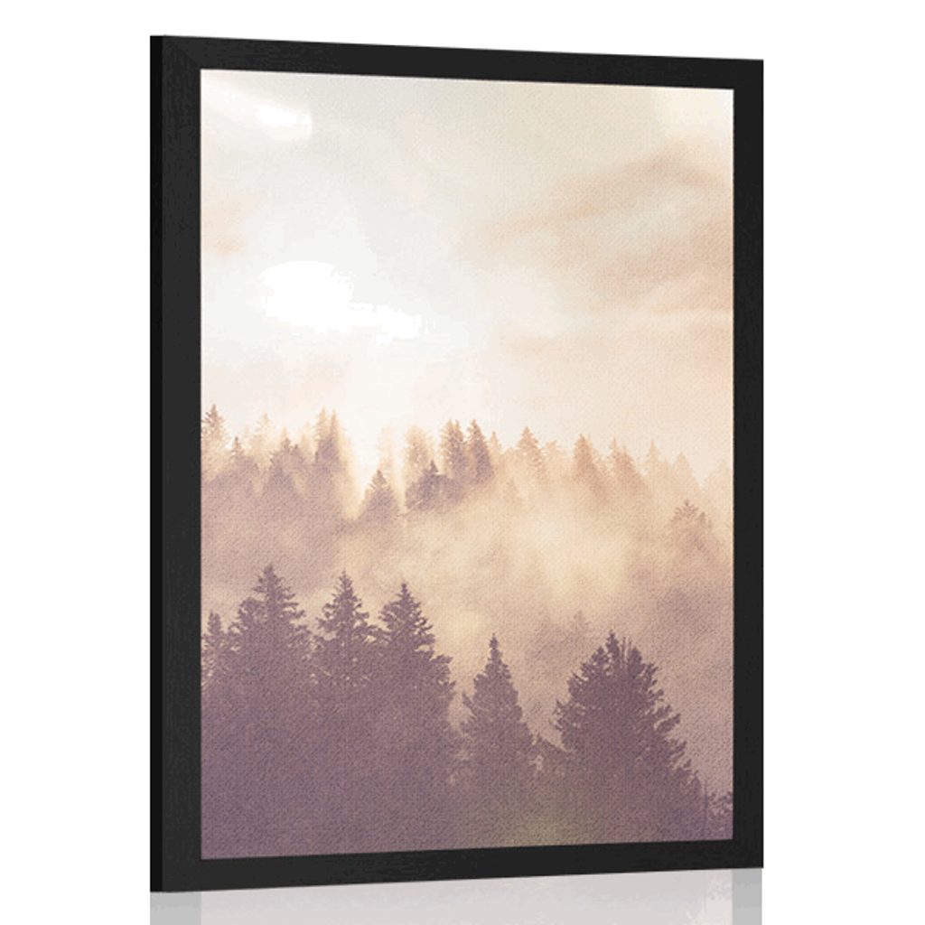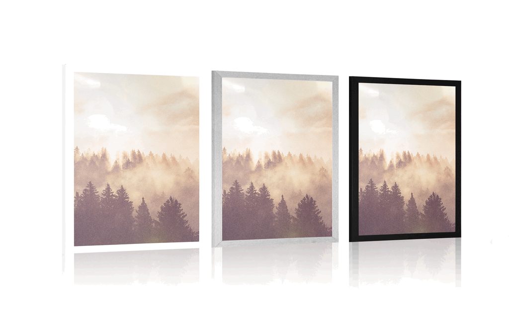 AFFICHE AVEC PASSE-PARTOUT – BROUILLARD SUR LA FORÊT - NATURE - AFFICHES