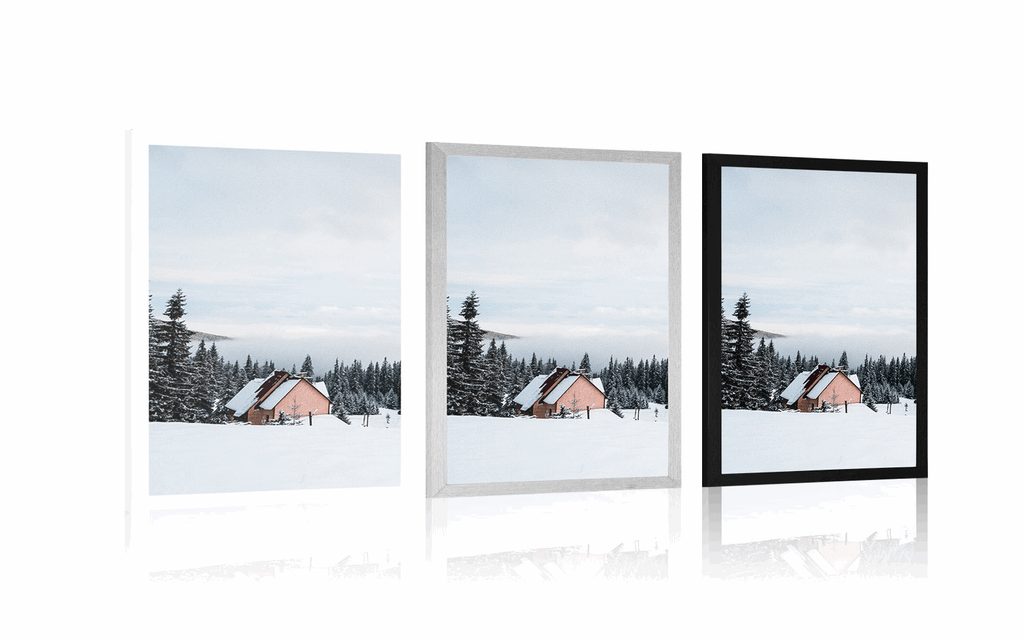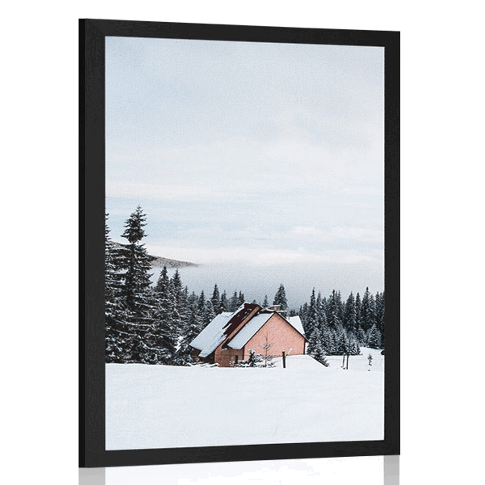 AFFICHE – CHALET DANS LA NATURE ENNEIGÉE EN NOIR ET BLANC - NOIR ET BLANC - AFFICHES