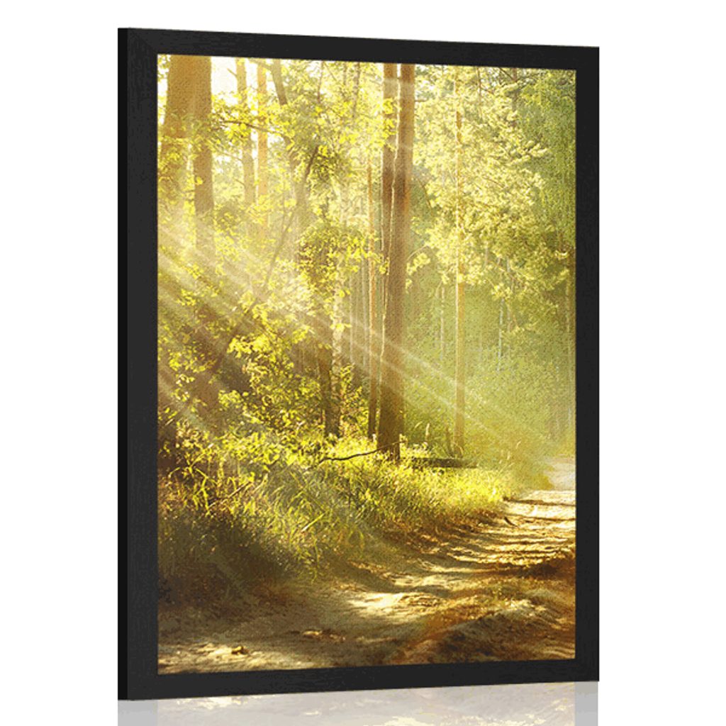 Affiche – Rayons de soleil dans la forêt avec passe-partout