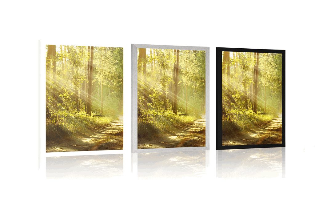 AFFICHE AVEC PASSE-PARTOUT – RAYONS DE SOLEIL DANS LA FORÊT - NATURE - AFFICHES