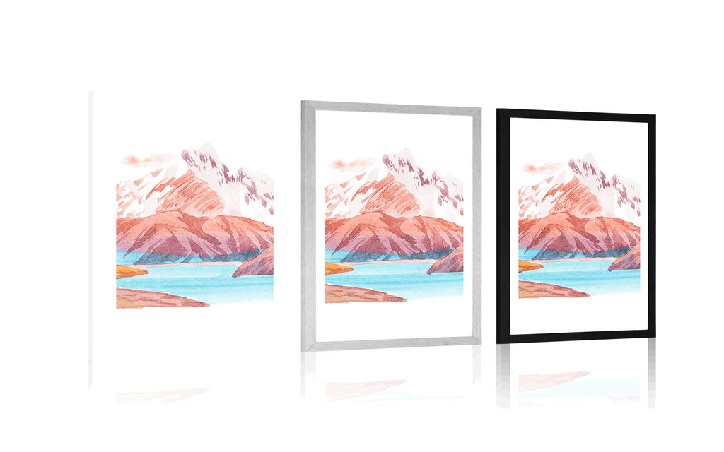 AFFICHE AVEC PASSE-PARTOUT – BEAU PAYSAGE DE MONTAGNE EN NOIR ET BLANC - NOIR ET BLANC - AFFICHES