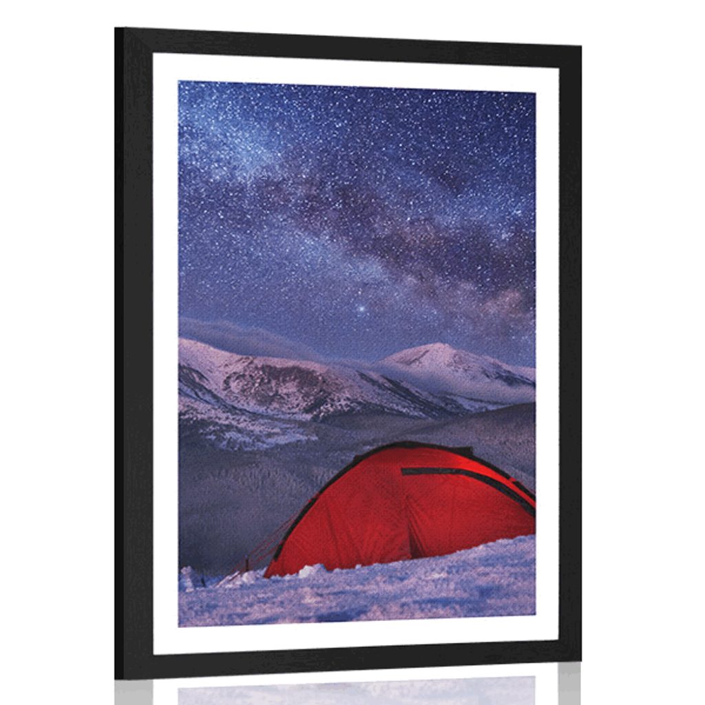 Affiche avec passe-partout – Tente sous le ciel nocturne