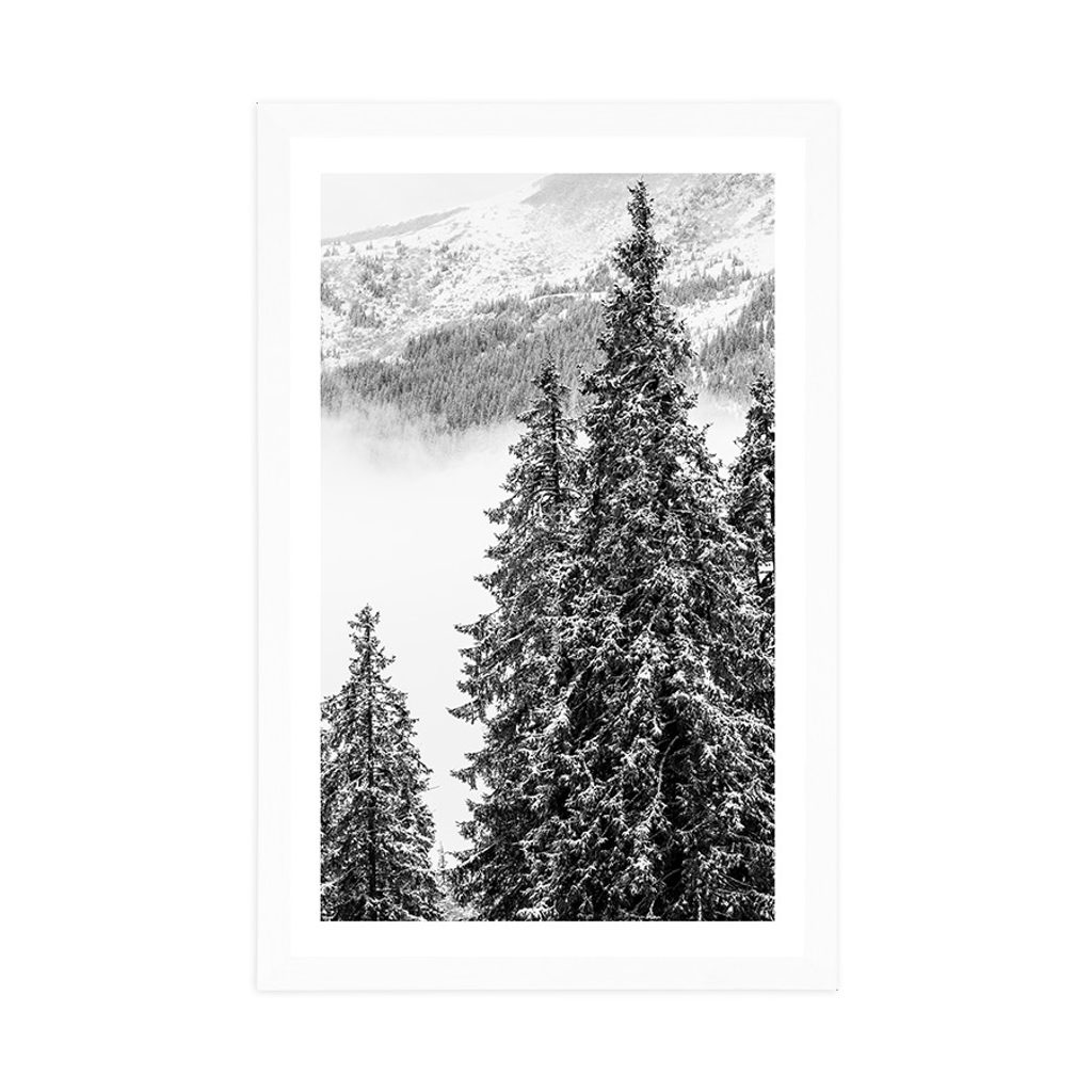 AFFICHE – ARBRES DE PIN ENNEIGÉS EN NOIR ET BLANC - NOIR ET BLANC - AFFICHES