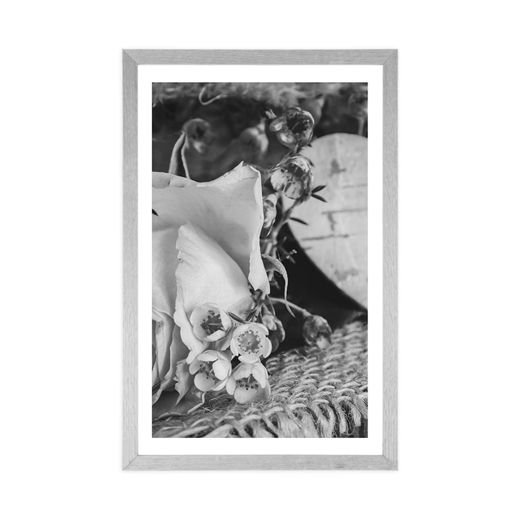 AFFICHE – ROSE ET CŒUR EN JUTE EN NOIR ET BLANC - NOIR ET BLANC - AFFICHES