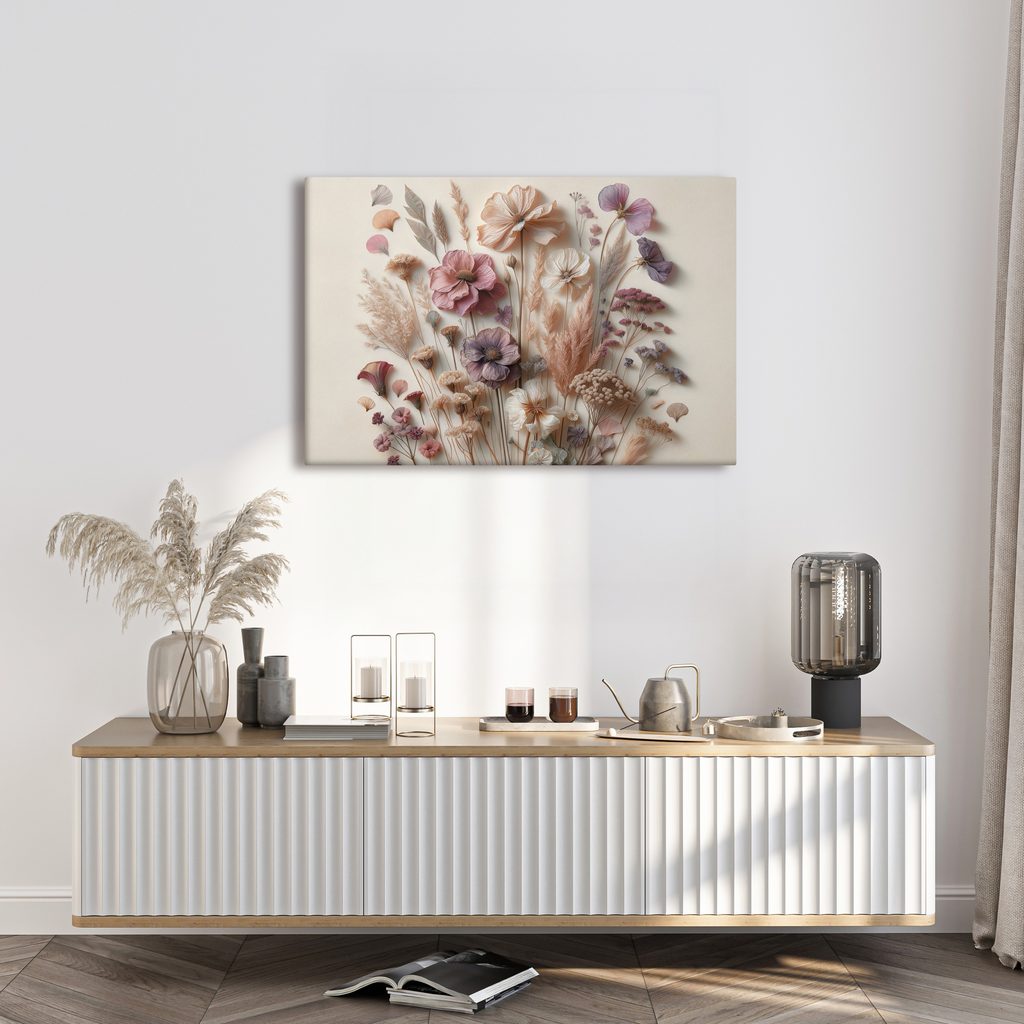 Obraz s vintage květinami na světlém pozadí přináší do vašeho interiéru romantickou atmosféru. Detailní zpracování květin a trávy v jemných pastelových odstínech dodává dílu eleganci a sofistikovanost. Barvy, jako jsou růžová, fialová a béžová, vytvářejí harmonickou a útulnou náladu. Tento obraz je ideální pro zdobení obývacího pokoje nebo ložnice, kde podtrhne vaši osobnost. Kvalitní tisk na plátno zajišťuje dlouhou životnost a snadnou údržbu.