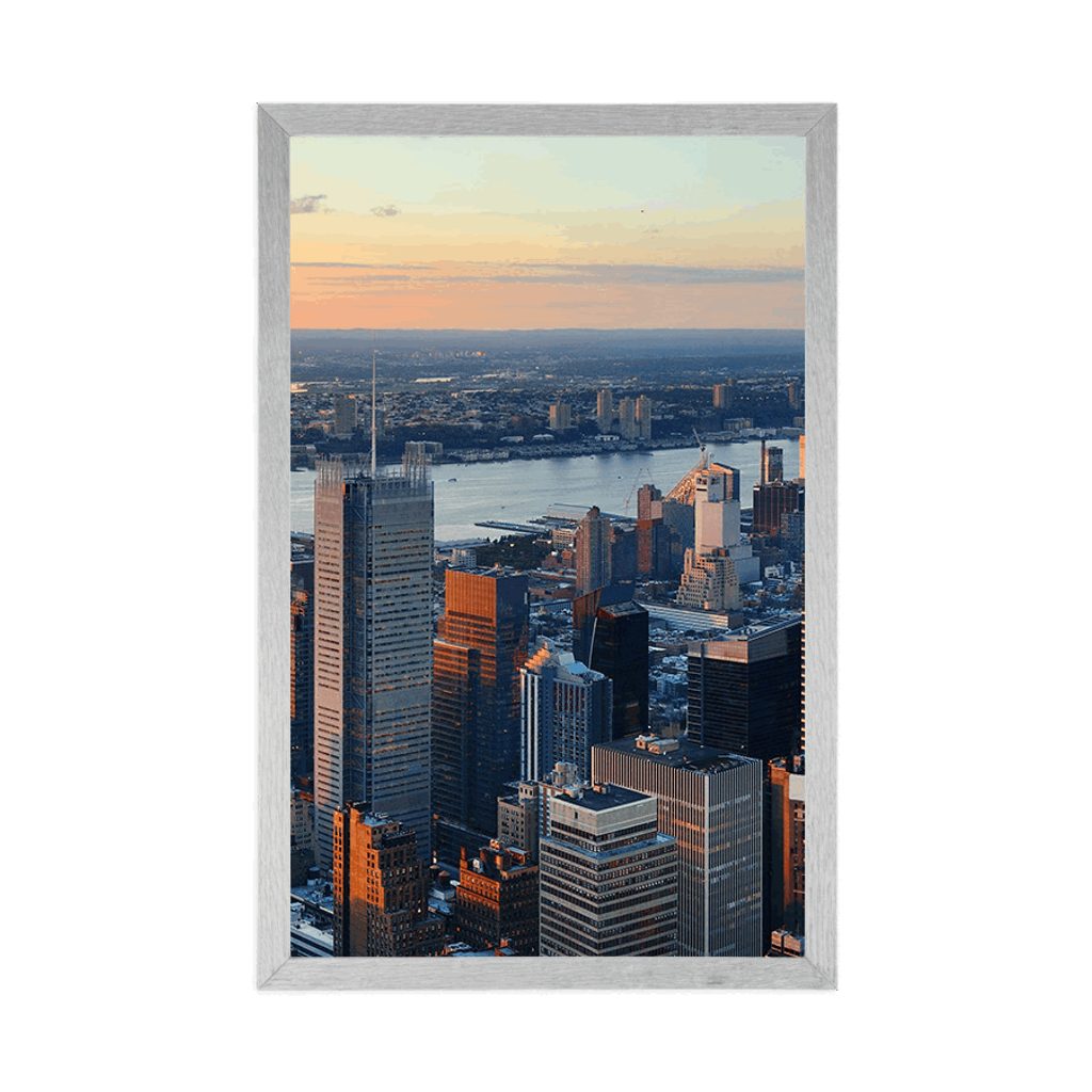 AFFICHE AVEC PASSE-PARTOUT – COUCHER DE SOLEIL SUR LA VILLE DE NEW YORK - VILLES - AFFICHES